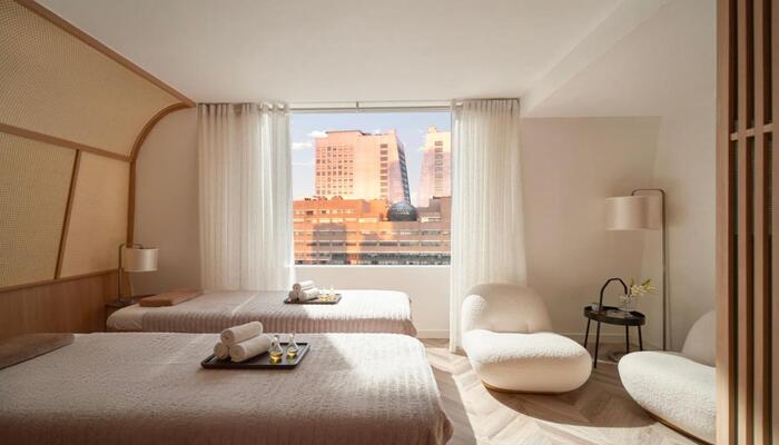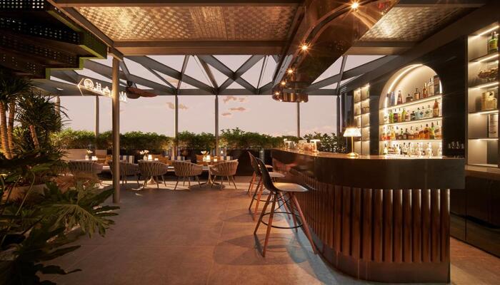 • سوئیت: 38 متر مربع، چشم‌انداز شهر، استخر روی پشت بام، یک تخت دونفره، یک حمام.