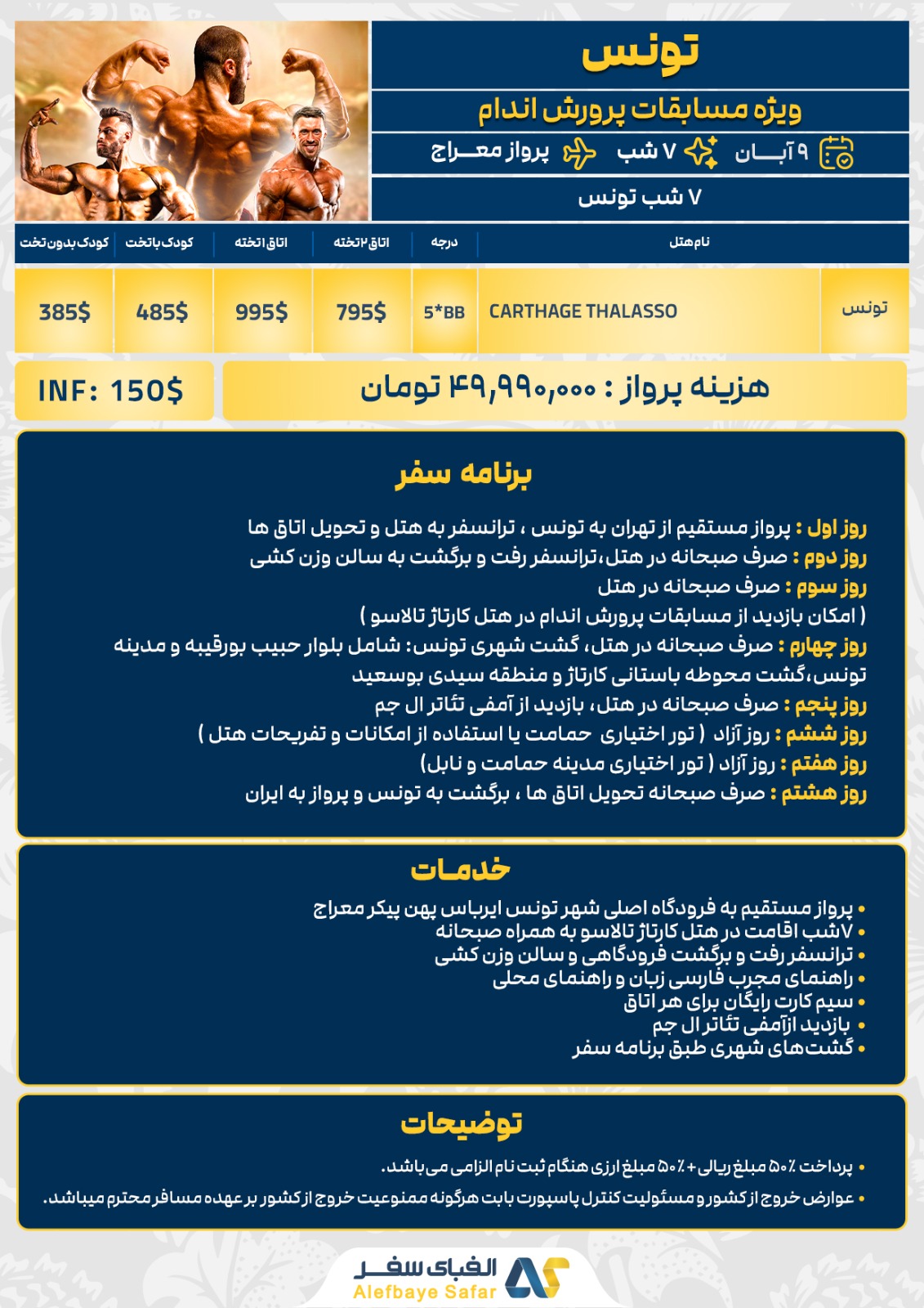 تور تونس 9آبان 1404 (مسابقات پرورش اندام)